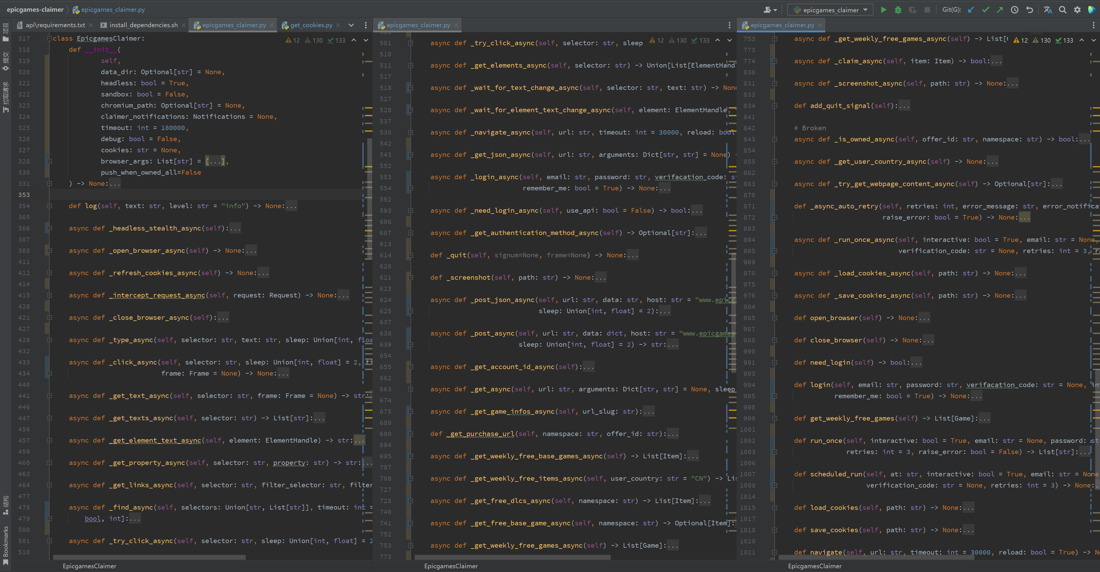 到此阶段,我们可以回顾一下 EpicgamesClaimer 项目中遇到的第一个困难,那便是整个项目与 Puppeteer 强绑定,维护者几乎为每一个原子操作都做了修饰封装,而 puppeteer(也可称 pyppeteer) 与 Selenium 一样都是主流的自动化测试框架,并不具备隐秘特征的能力。所以,维护者几乎只能基于 pyppeteer 的生态寻找类似的解决方案,或基于 pyppeteer 底层特性寻找突破口,或选择 undetected-chromedriver 嫁接开发。但无论选择哪一种,代价都是极其惨痛的。