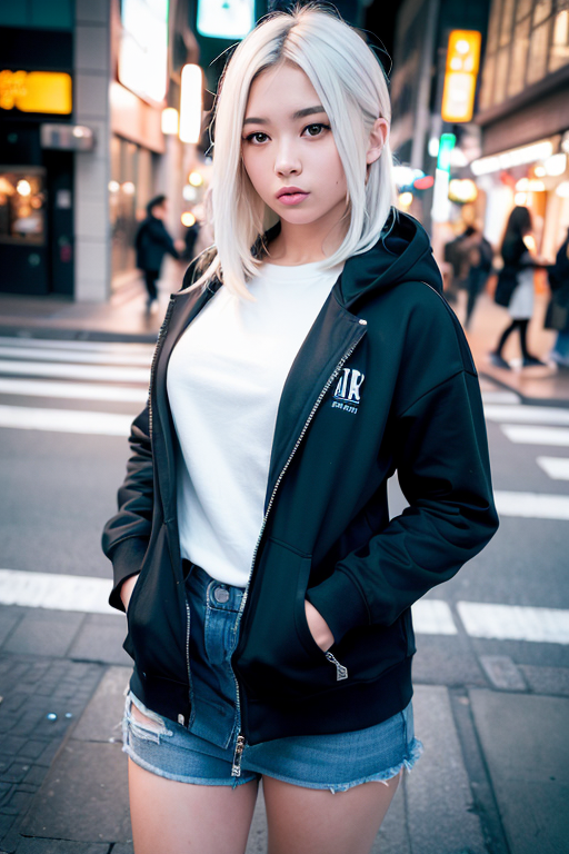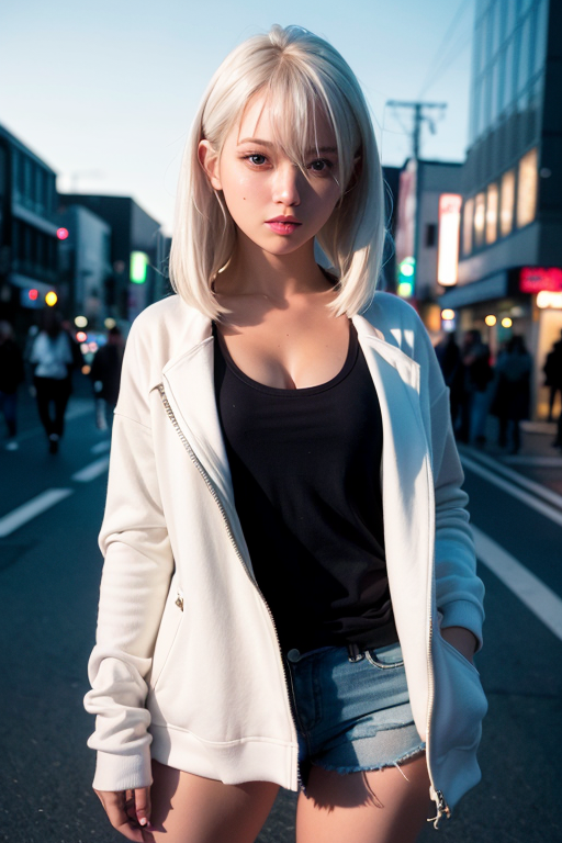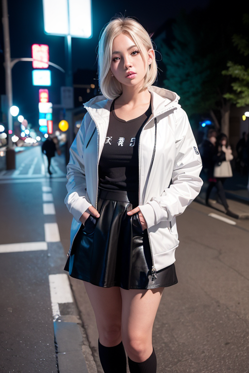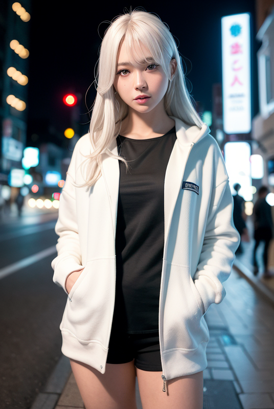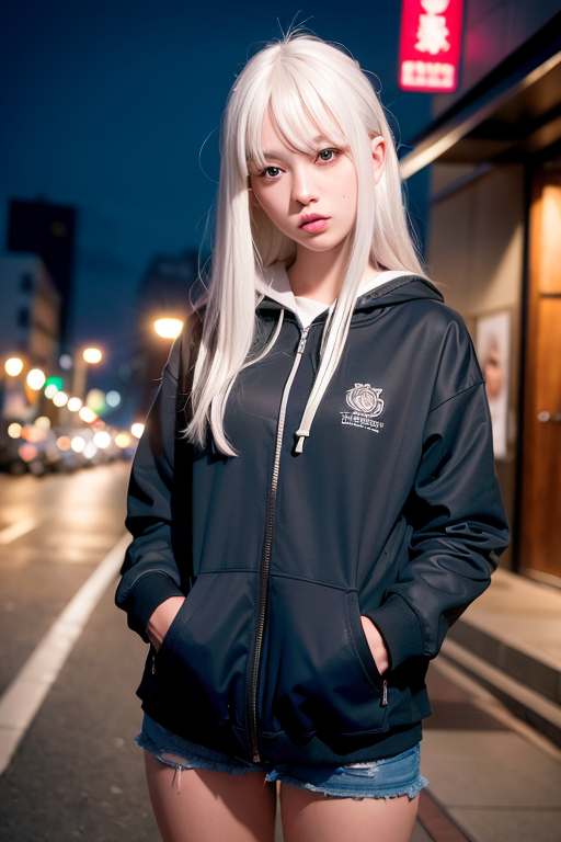 ![]() | (8k, RAW photo, best quality, masterpiece:1.2), (realistic, photo-realistic:1.37), ultra-detailed,full body,1 girl, solo,beautiful detailed sky,detailed tokyo street,night,beautiful detailed eyes,beautiful detailed lips,professional lighting, photon mapping, radiosity, physically-based rendering,extremely detailed eyes and face, beautiful detailed eyes,light on face,cinematic lighting, short jacket,hoodie,school uniform,1girl,full body,full-body shot,see-through,looking at viewer,outdoors,((white hair)), |